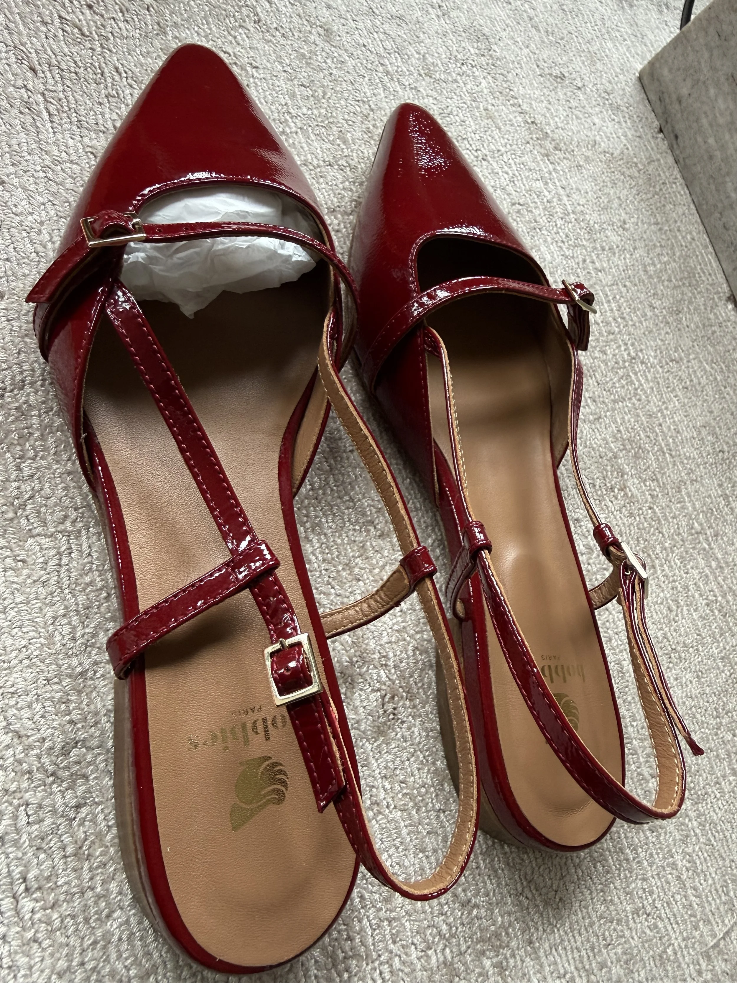 I picked up the Amel in Cherry Gloss, a flat, polished shoe with an instant pop of color. They retail for $275 USD in the U.S.; I paid $208.28 in Paris.